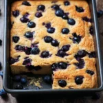 - Backform vorbereiten: Ein Backblech (oder 9×13 inch / ca. 23×33 cm Auflaufform) leicht einsprühen oder mit Backpapier auslegen. Teig hineingeben und glatt streichen. Falls du Beeren nutzt, oben drauf verteilen.