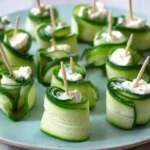 Ein einfaches Rezept für frisch gefüllte Gurkenröllchen mit Kräuter-Frischkäse und getrockneten Tomaten, ideal als Snack oder Beilage.